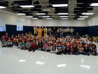 Kindergarten students give a great big THANK YOU with their fire pup hats!